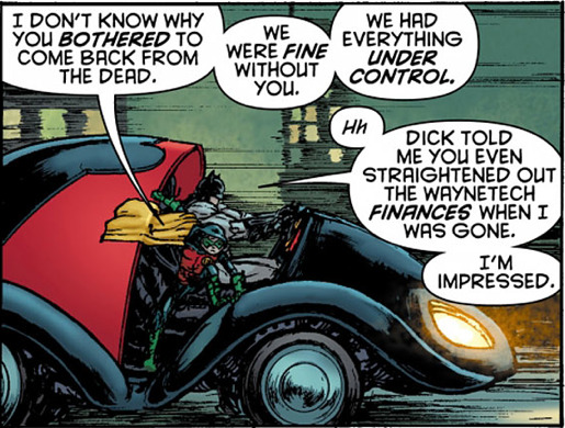 I imagine Damian’s words must cut Bruce to the core: Bruce is someone who lost his own father to untimely death and would do almost anything to have his parents back. And yet his son responds to Bruce’s return with open resentment.