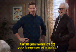 Bruce: *stomping towards him and pointing at him* I’m glad you’re no longer dead, you lousy son of mine!
