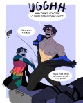 Dick: Who do you think took the picture? As I was saying – Bruce, he – he – *starts to laugh so hard that he tears up* trips over Jason’s line somehow and falls into the ocean! *slapping-the-floor laughing* The World’s Greatest Detective, in his Batwaders, drenched like a wet bird… *sighs happily* You should’ve seen his face!