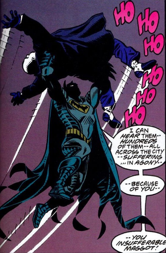 A bulky Lex Luthor tries to take over Bruce’s company, but Bruce threatens to expose his past deeds in Metropolis and his tragic accident at a chemical factory. Enraged, Lex reveals himself to be the Joker and kidnaps Lois. Batman retaliates, almost killing him, but Lois’ presence snaps him out of it and he sends the criminal to jail instead.